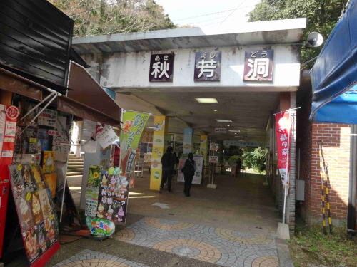 ![]() ▲秋芳洞観光センター前(11:30):正面左の商店街のレストランで昼食 |