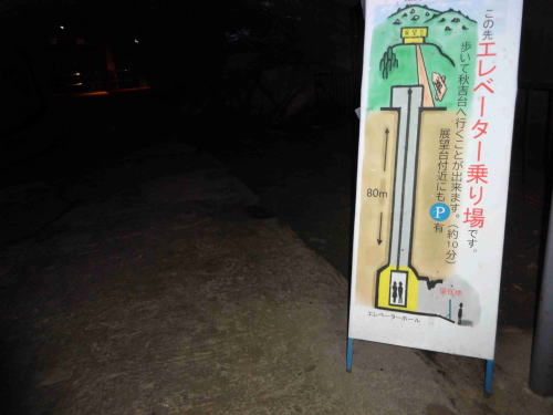 ![]() ▲秋芳洞内部(12:30):エレベーターの説明図(標高差80m) |