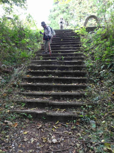 ![]() ▲カルスト展望台から黒谷入口への近道(13:26): 段差の大きい急勾配の階段 |