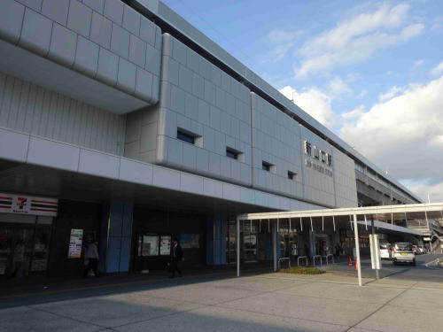 ▲JR新山口駅南側(15:58):レストランが数件あり、広場には「昭和の芭蕉」と言われた種田山頭火の銅像あり |