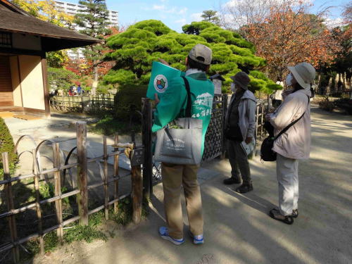 ![]() ▲縮景園の西廻りショートコース(30分)を歩く 拉致被害者の横田めぐみさんが広島で住み、小学生の時に訪れた写真をガイドが紹介 |
