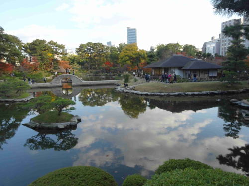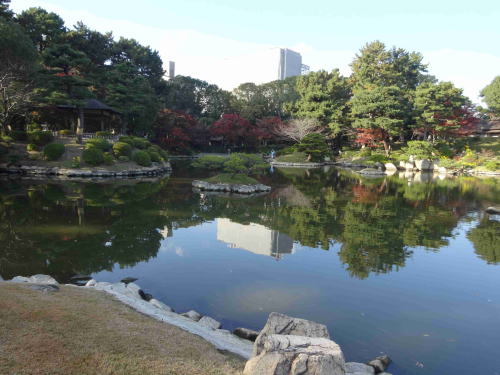 ![]() ▲縮景園の広い池は海水、淡水が流れており海と川の両方の魚がいるようです。 |