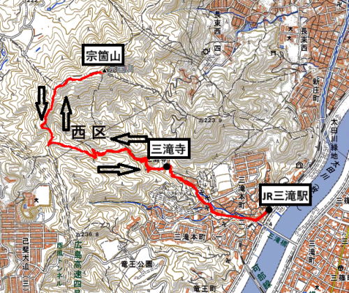![]() ▲三滝寺、宗箇山のGPS軌跡図 |
