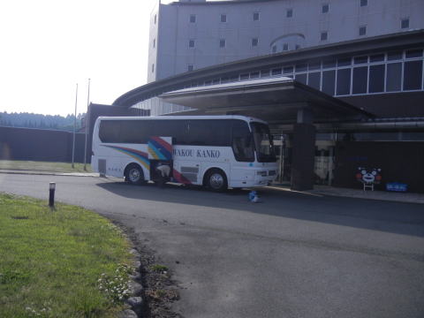 ![]() ▲ホテル前でくまもんと |