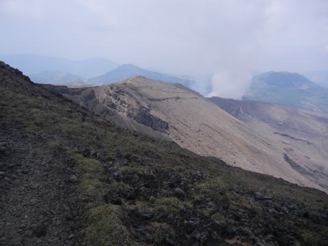 ![]() ▲中岳と吹き上がる蒸気 |