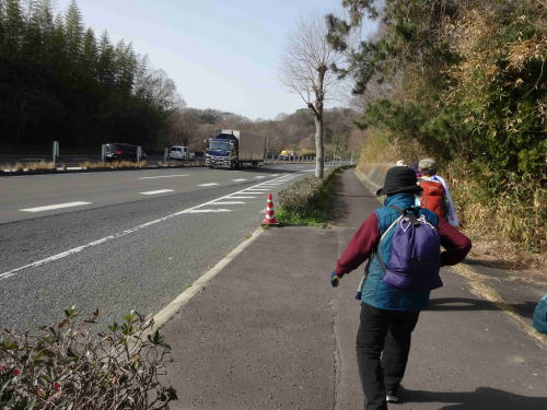 ![]() ▲国道11号線沿いの歩道がしばらく続く:途中立ち休憩(9:45~9:50) |