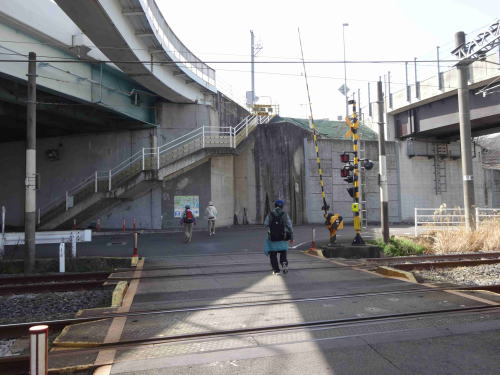 ![]() ▲県道33号線を左折し、予讃線の踏切を渡る(11:15) |