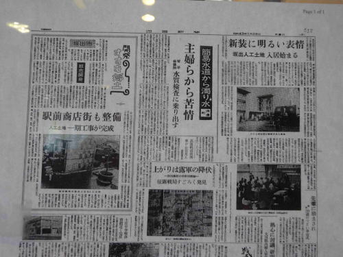 ![]() ▲レストラン出口の四国新聞(昭和43年1月29日): 58年前に人工土地に入居が始まった記事(懐かしい) |