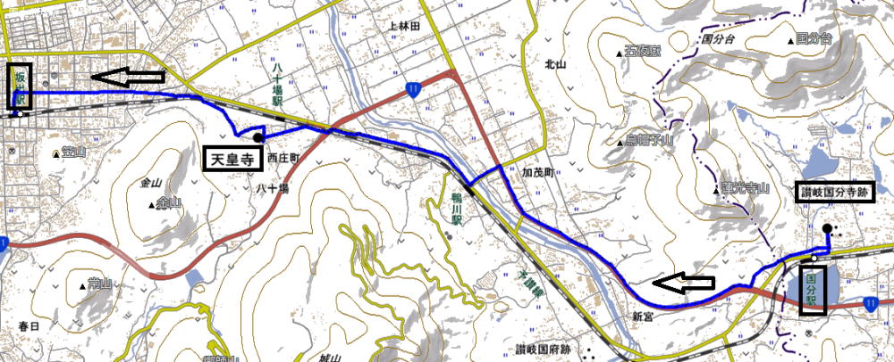 | クラブ行事としては3回目の「一日一斉遍路ウオーク」に7名が参加し、JR国分駅から讃岐国分寺、天皇寺にお参りし、JR坂出駅まで歩きました。 本日のコースとコースタイムは以下の通りです。 JR讃岐塩屋駅8:09==丸亀駅8:13==宇多津駅8:17==坂出駅8:38==8:51JR国分駅(集合)9:00……9:05讃岐国分寺9:15……約7㎞……11:30天皇寺11:50……約3㎞……13:00駅前レストランで(昼食)13:55==14:00JR坂出駅14:30==14:34宇多津駅==14:38丸亀駅==14:40JR讃岐塩屋駅 歩行距離:12km、歩行時間:3時間30分、参拝、休憩、昼食を含む所要時間:5時間 ●讃岐国分寺にお参りするのは6年前の2月28日クラブ行事「定例B:五色台」以来でした。 ここから西方にJR坂出駅まで歩くのは初めてで、途中の天皇寺にお参りし、接待場所で飴玉などを頂き、坂出駅近くのレストランには午後1時に到着。 天皇寺までの遍路道は交通量が多い国道11号、県道33号沿いが大半で、しかも単調な歩きでかなり体力を消耗したメンバーもいたようでした。 レストランでの食事では会話が弾み1時間近く過ごしたので、帰りは予定より1時間以上遅くなりました。 白峰宮、天皇寺近くにはトコロテンの名物店その他の観光地もあるようなので、来年度のクラブ行事の候補に入れてはと思いました。 |