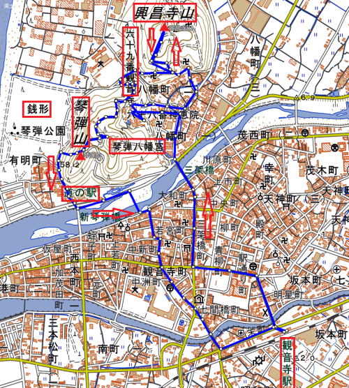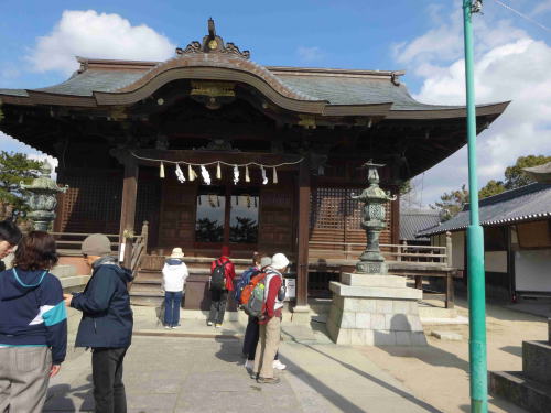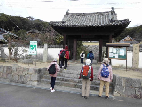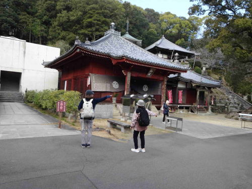 | 西風が強い寒い一日でしたが、10名で観音寺市の里山と周辺の観光地を歩きました。 本日のコースとコースタイムは以下の通りです。 JR宇多津駅8:18==丸亀駅8:21==8:27多度津駅8:31==9:06JR観音寺駅9:20……9:50第68番札所神恵院、第69番札所観音寺10:05……10:10興昌寺……10:20一夜庵10:30……10:45興昌寺山……11:30銭形展望台11:35……11:40琴弾八幡宮……11:45琴弾山……琴弾公園……12:00道の駅(SHUで昼食、大平正芳記念館見学)13:20……13:55JR観音寺駅14:14==14:50多度津駅15:02==15:08丸亀駅==15:11JR宇多津駅 歩行距離:6,2km、歩行時間:2時間45分 休憩、参拝、昼食、観光を含む所要時間:4時間35分 ●このコースは昨年末以来の2度目でしたが、四国霊場八十八か所神恵院、観音寺が隣り合わせにあり、一夜庵、根上がり松、銭形展望台、琴弾八幡宮、大平正芳記念館を見ることが出来る観光コースで、暖かい時期に再度歩いてみてもいいのではないかと思いました。 |