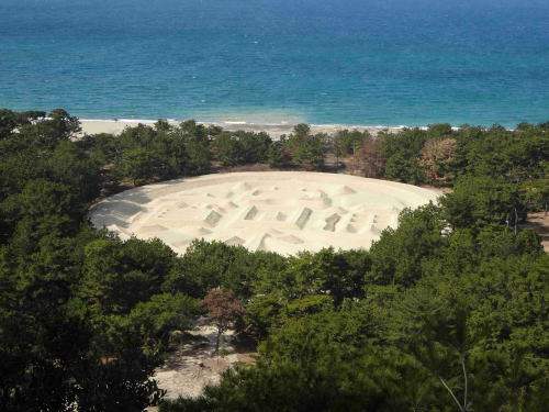 ![]() ▲銭形展望台から見た巨大な砂の寛永通宝(11:30) |