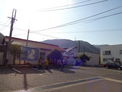 ![]() ▲JR熊山駅前で準備体操(8:55):後方が熊山 |