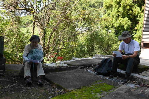 ![]() ▲高台の木陰で昼食(11:40~12:10) |
