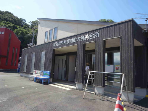 ![]() ▲フェリー乗り場前にある新居浜市営渡海船大島待合所(12:50) |