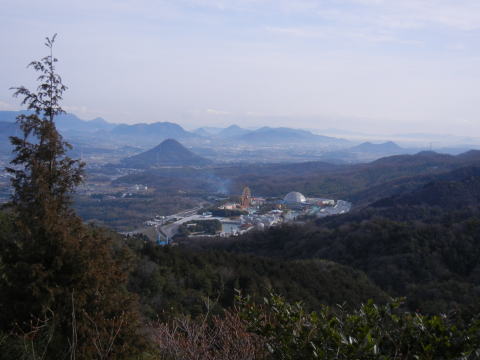 ![]() ▲登山道からレオマワールドが一望できる、冬だがお客さんは多いそうだ |