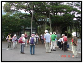 田駅に向かう。順調な滑り出しである。 JR讃岐財田駅前では、樹高9m、枝張り約18 mのタブノキが出迎えてくれた。香川の保存木に指定されている勇姿はさすがである。 AM7時25分 JR讃岐財田駅で18名が準備体操して出発 ![]() JR讃岐財田駅前で、18名が準備体操をして金刀比羅宮を目指して出発する。 駅から15分程歩いて、最初の目的地である厳島神社に着く。静寂な鎮守の森である。 AM 7時50分、樹林が県の自然記念物に 指定されている木熊野神社に着く。 道標を確認しながら、予定どおりAM 8時半 過ぎに、国道陸橋(旧32号線)を渡る。 途中、樹木に蜘蛛の巣が密集している歩道を歩いた時には、道路管理の大切さを感じる。 歩道橋を超えると、なだらかな舗装された道路を歩きながら、AM 9時10分に比留田神社に着く。 石段を駆け上がり、三つ目の神社にも参拝する。少し疲れを癒してから、地域住民が雨乞いの願いを込めて創った「天下り龍神社」に向かう。 AM 9時50分、真新しい深紅の鳥居をくぐって同神社に着く。正しい心で一心にお祈りをする。 今朝の天気予報では少しの降雨が予想されていたが、雨は今の所は気にかけずに 竹ノ尾越を歩けそうである。所が、タケノコ山への途中、道路にネットが張られているのに出くわす。 道を間違えたのかと一瞬思ったが、横の説明板を見ると、イノシシ対策 の防止ネットであると分かり納得して通り抜ける。 ![]() ▲タケノコ山への途中、道路上に侵入防止のネットが設置 AM 10時10分、JR讃岐財田駅から5.7Km、金刀比羅宮まで4.2Kmのタケノコ山の峠付近で集合写真を撮る。その後、龍王展望台に会員有志8名が向かう。前回も人が 通行した跡も少ないことから途中断念したらしいが、今回も藪込の厳しい状況から途中残念ながら引 き返す。竜王展望台 からの眺望は、次回 へのお楽しみとなる。 AM 10時45分、国の 重要無形民俗文化財 に指定されている綾子 踊りで有名な加茂神 社に着く。 ここでトイレ 休憩も含めて、昼食 タイムである。 AM 11時20分、鎮守 の森に囲まれた境内 を出発する。 旧土佐街道で、石灯籠や坂本竜馬像がある牛屋口にはAM 11時50分に着く。 ここから本日の目的地である金比羅宮大門までは、20分程である。会員の皆様も、元気で無事に、大門の階段下に午後12時10分に到着する。ここで現地解散する。 本宮方面に行く会員、琴平駅方面に行く会員と、2班に分かれる。 丁度、地元琴平では、10月10日に開催される金刀比羅宮大祭の前に、氏子達で 例年の10月1日〜2日にかけて秋季大祭を行っていた。この日は、小中学校も特例で お休みするとの、父兄の話である。賑やかな太鼓台が繰り出されて、町内は祭り一色 であった。賑やかな駅前を午後1時13分発のJRに乗車して、丸亀駅に向かう。 前回と 同様に、1時間ほど早く出発して、丸亀駅には午後1時34分に到着する。会員の皆様、 お疲れ様でした。 次回こそ、龍王展望台からの眺望を楽しみにしています。 |