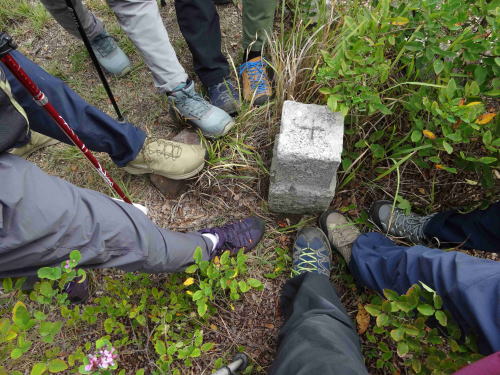 ![]() ▲山頂の二等三角点を囲んで |