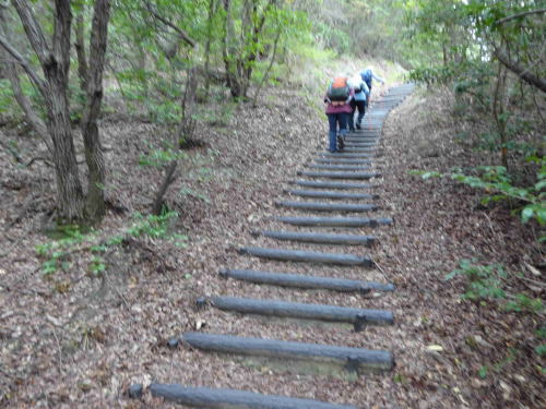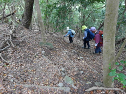 ![]() ▲来た道を下山:急坂は慎重に:落ち葉で滑りやすい |