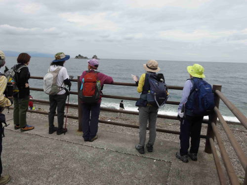 ![]() ▲塩越公園の海岸で波の音を聞きながら立ち休憩(11:55) |