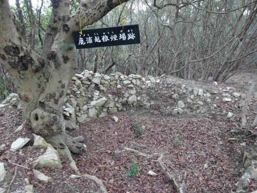 ![]() ▲遠見展望台手前の遺跡(12:28): 江戸時代末期に高松藩が築造した狼煙場跡 |